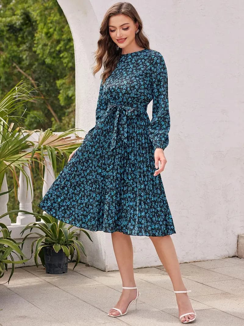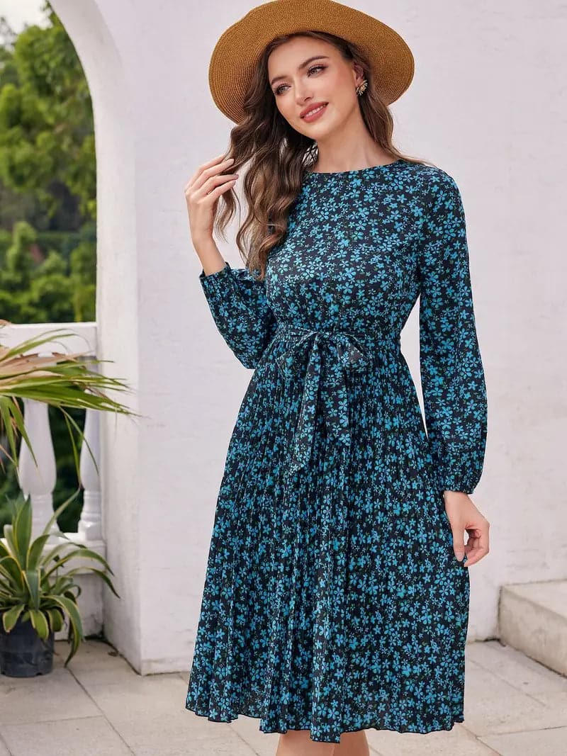 Die langen Ärmel und der runde Ausschnitt des Kleides verbinden klassisches Design mit modernen Akzenten und erzeugen eine Aura von zurückhaltender Eleganz. Eine taillierte Taille, hervorgehoben durch ein geschmackvolles Binde-Detail, betont Ihre Silhouette, was es perfekt für einen Tag in der Sonne oder einen lässigen Abend macht.