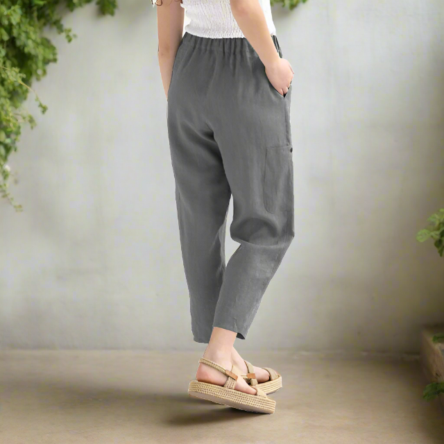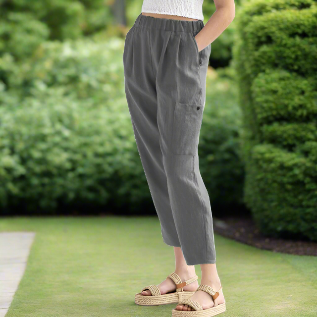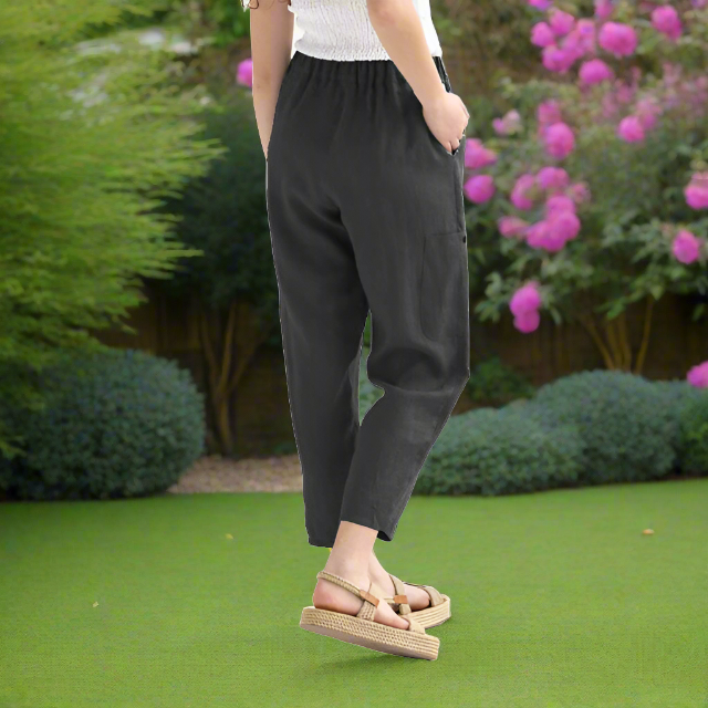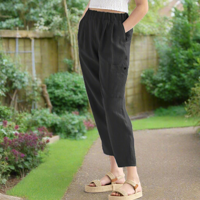 Die schicke Vielseitigkeit dieser Hosen macht sie zum perfekten Begleiter für jeden Look. Kombinieren Sie sie mit einer eleganten Bluse und Heels oder mit einem gemütlichen Pullover und Ihren Lieblingssneakers. Das entspannte Design bietet Bewegungsfreiheit, ohne dabei auf Stil zu verzichten. Der elastische Bund sorgt für eine bequeme, passgenaue Passform, die sich Ihrer Körperform anpasst.