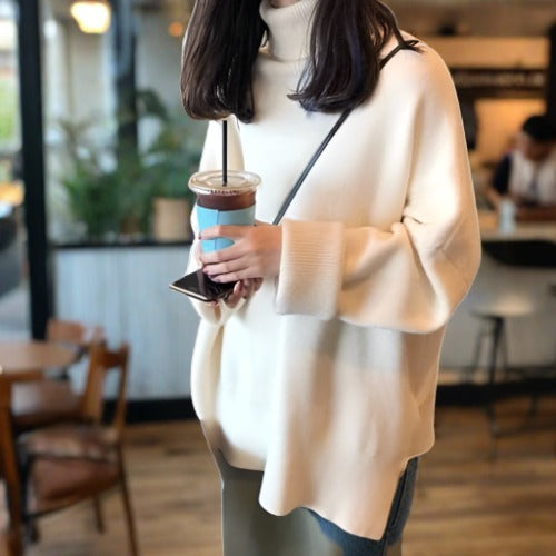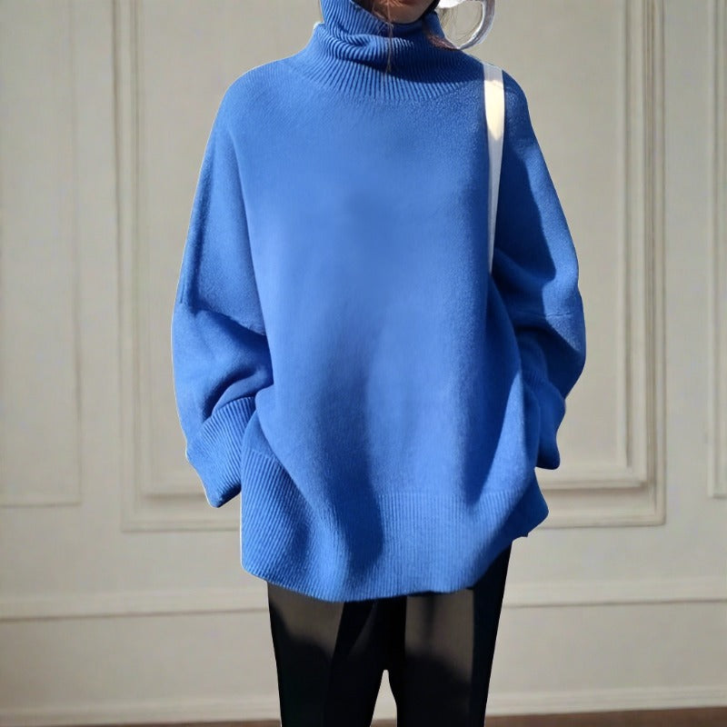 Erleben Sie den perfekten Mix aus Komfort und Stil mit diesem schicken Rollkragenpullover. Das Design bietet eine großzügige Rollkragenpartie für maximale Wärme und eine lässige Silhouette, die voll im Trend liegt. Die überschnittenen Schultern und weiten Ärmel sorgen für eine entspannte Passform und schmeicheln jeder Figur.