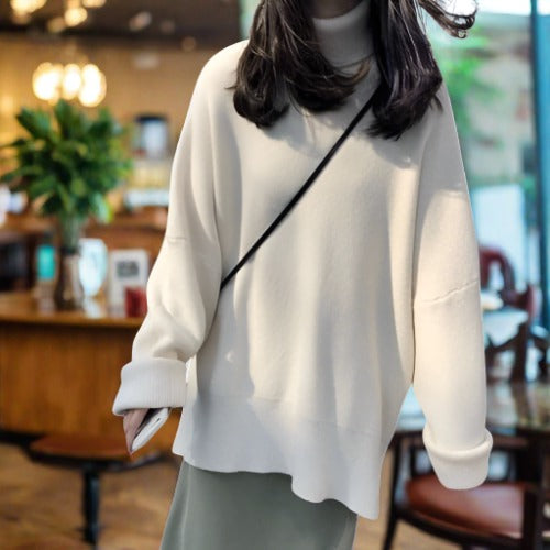 Kombinieren Sie diesen Pullover mit schicken Leggings oder Ihrer Lieblingsjeans für einen lässigen, aber dennoch eleganten Look. Er ist die ideale Wahl für gemütliche Wochenendbrunches, lässige Bürotage oder einfach zum stilvollen Entspannen zu Hause.