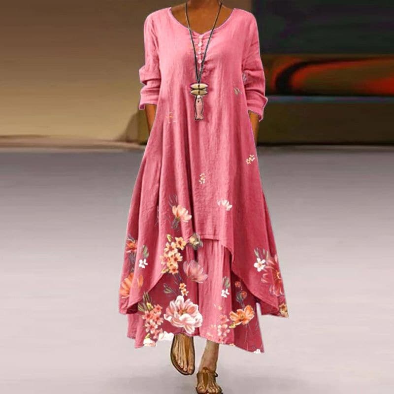 Verleihen Sie Ihrem Look mit diesem atemberaubenden Kleid mit asymmetrischem Saum und rotem Blumenmuster einen Hauch von Bohème-Charme. Das Kleid, gefertigt aus weichem, atmungsaktivem Stoff, besticht durch sein lebhaftes Muster, das an die Essenz des Frühlings erinnert. Der schmeichelhafte asymmetrische Saum sorgt für eine dynamische und elegante Silhouette.