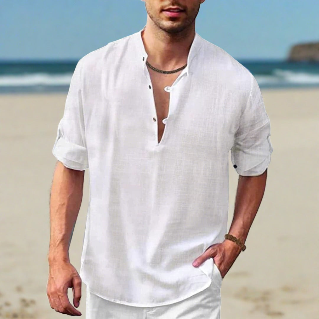 Steigern Sie Ihren Stil mit dem makellos maßgeschneiderten Leinenhemd Summer Breeze. Dieses vielseitige Stück verspricht Komfort und Eleganz, ob Sie in der Sonne baden oder eine gehobene Soirée genießen.
