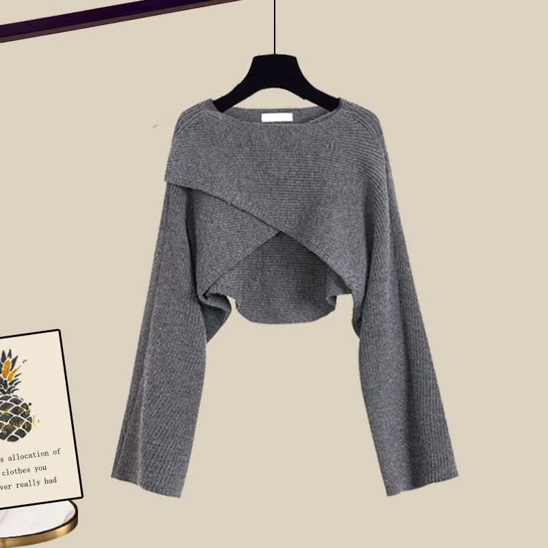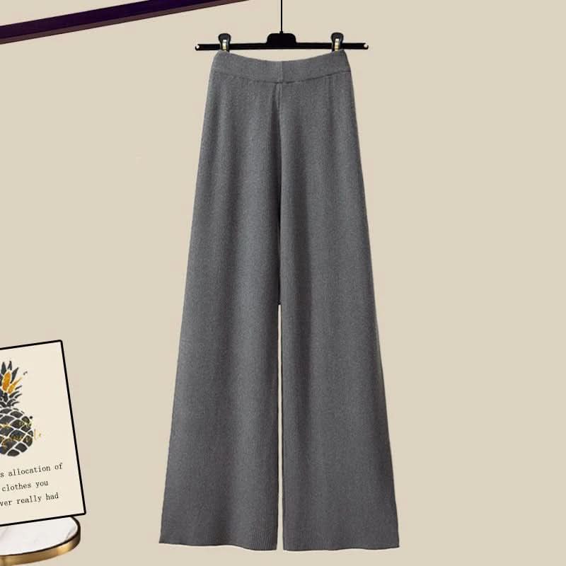 Cozy Elegance Set Grauer Cropped Pullover und Weite Hose für Damen
