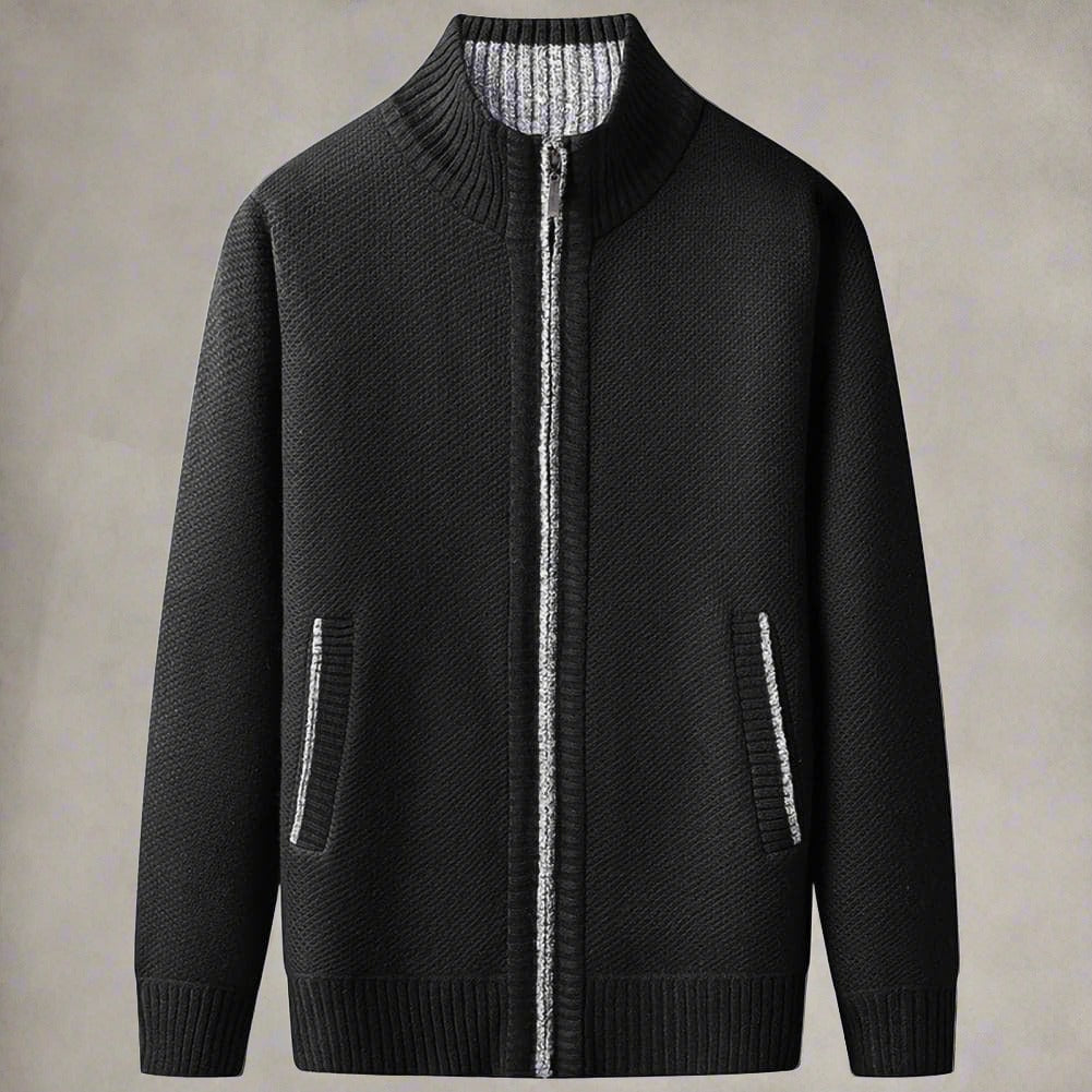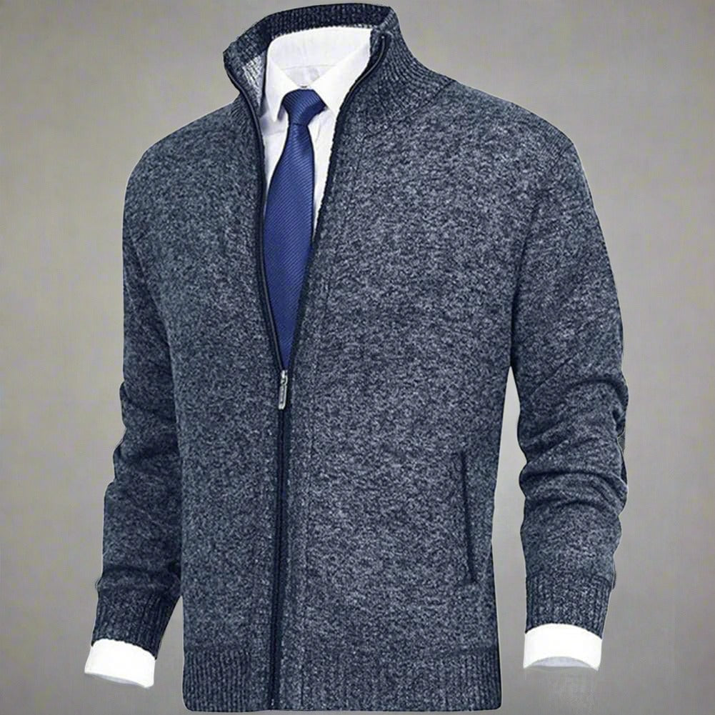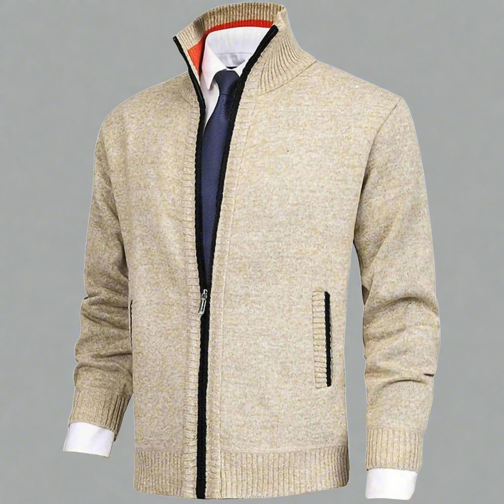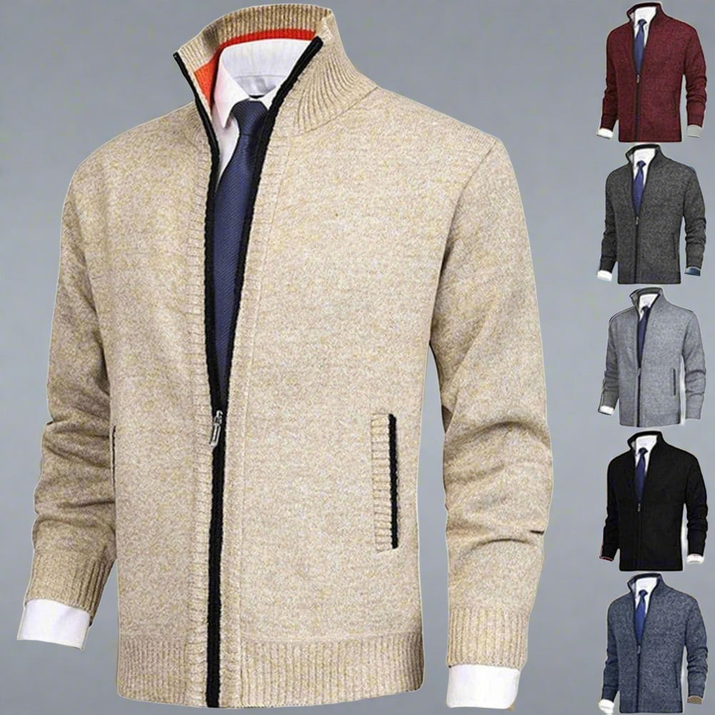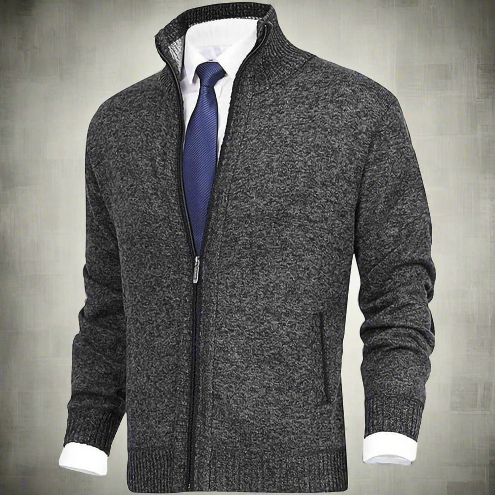 Erhöhen Sie den Stilfaktor Ihrer Garderobe mit diesem vielseitigen und eleganten Strick-Cardigan mit Reißverschluss und Stehkragen. Dieses zeitlose Stück ist perfekt für sowohl lässige als auch semi-formelle Anlässe und bietet einen bequemen Sitz ohne Kompromisse bei der Eleganz.