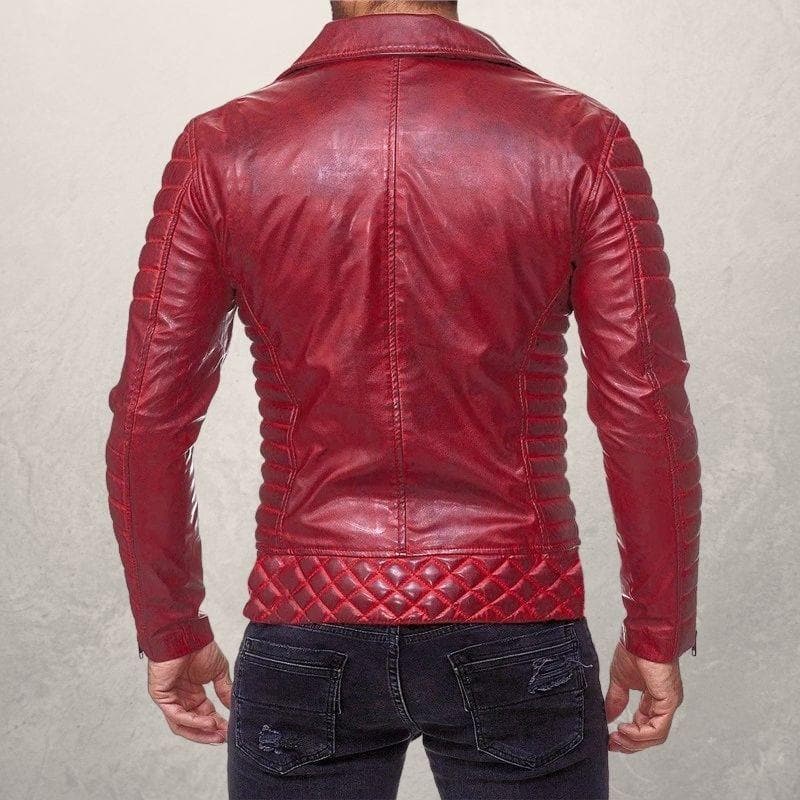 Setzen Sie ein mutiges Stil-Statement mit dieser auffälligen Vintage-Motorradlederjacke. Gefertigt aus hochwertigem Leder, bietet diese Jacke sowohl Langlebigkeit als auch ein luxuriöses Gefühl. Der lebendige Farbton ist ein echter Hingucker, während die detaillierte Naht und das geteilte Design jedem Outfit einen Hauch von rebellischem Charme verleihen.