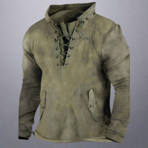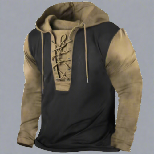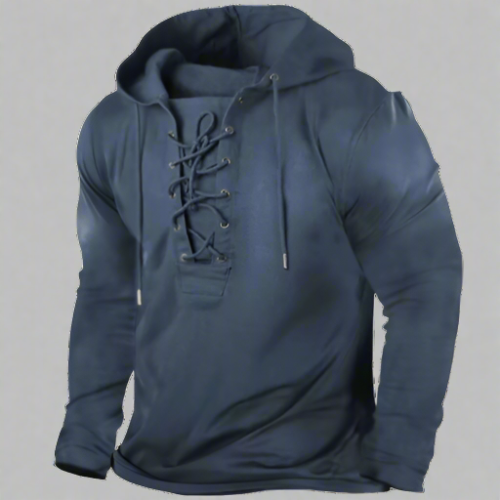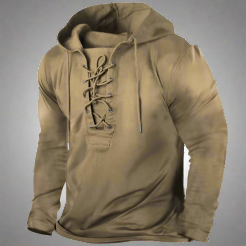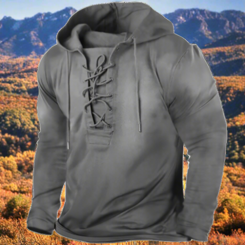 Erleben Sie den robusten Charme unseres Vintage-inspirierten Lace-Up Hoodies, wo zeitgeehrter Stil auf modernen Komfort trifft. Mit einer Leidenschaft für die Vergangenheit gefertigt, ist dieser Hoodie eine Hommage an den furchtlosen Geist vergangener Zeiten und die unerschütterlichen Abenteurer von heute.