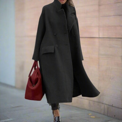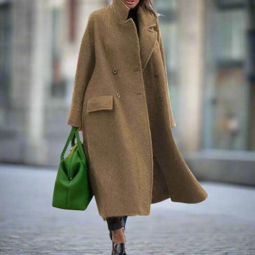 - Eleganter Kragen: Der Mantel ist mit einem schicken Kragen ausgestattet, der nicht nur vor Kälte schützt, sondern auch einen zusätzlichen Hauch von Raffinesse verleiht.