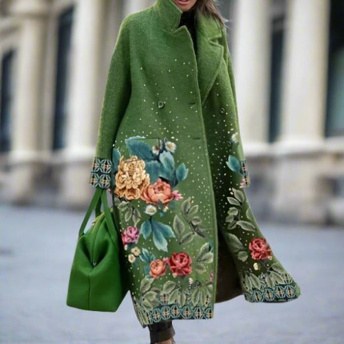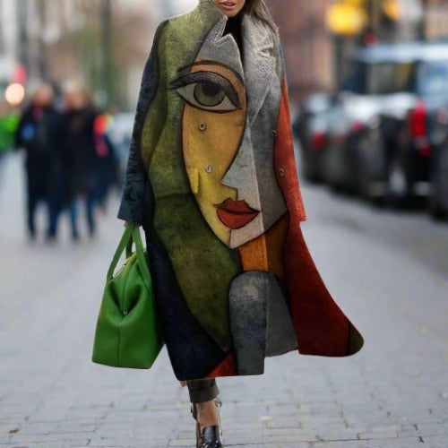 Ruth - Langer warmer Mantel mit Kragen und verschiedenen Mustern