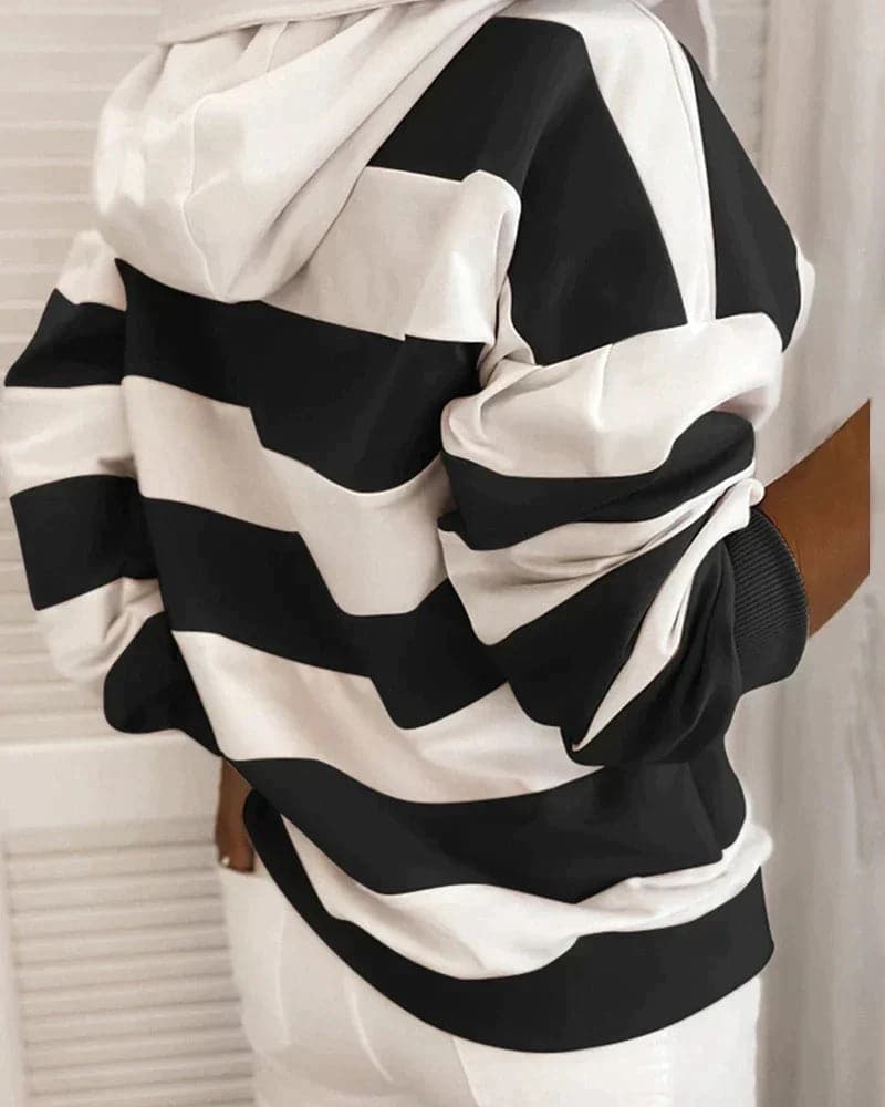 Umarmen Sie den maritimen Trend mit einem Stück, das so zeitlos ist wie das Meer selbst. Ob Sie am Dock oder in der Stadt sind, unser klassischer Marine-Streifen-Hoodie wird Ihr Go-to für lässige Eleganz sein.