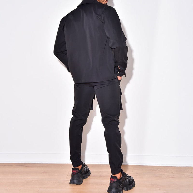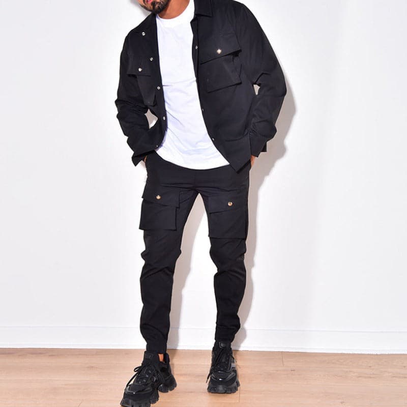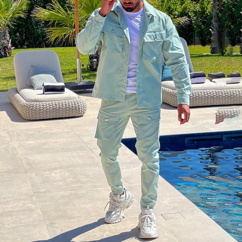 Die Jacke ist präzise aus hochwertigem, atmungsaktivem Stoff gefertigt, um den ganzen Tag über Komfort zu gewährleisten. Sie verfügt über einen schlanken Kragen, Knopfverschluss und mehrere Taschen für einen praktischen Hauch von Eleganz. Die Hose ist mit einer entspannten Passform gestaltet, die sich mit Ihnen bewegt, perfekt für Freizeit und Aktivitäten unterwegs.
