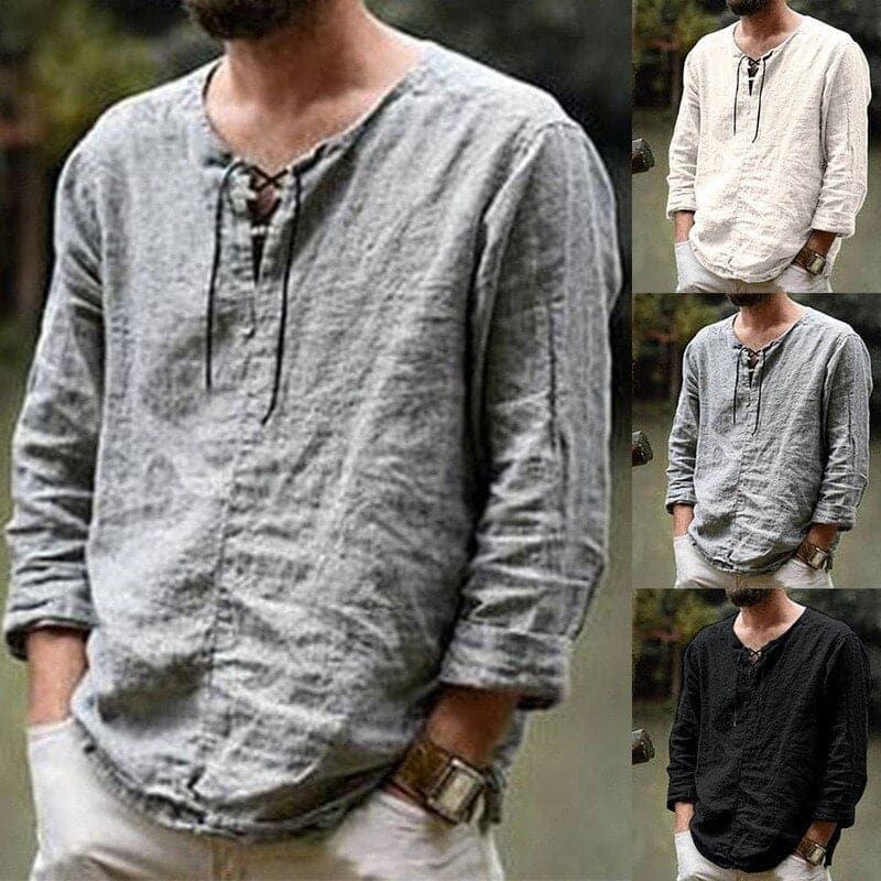 Erleben Sie eine Mischung aus lässigem Komfort und zeitlosem Stil mit diesem Vintage Leinen-Henley-Shirt. Hergestellt aus hochwertigem, atmungsaktivem Leinenstoff, ist dieses Shirt darauf ausgelegt, Sie den ganzen Tag über kühl und bequem zu halten.