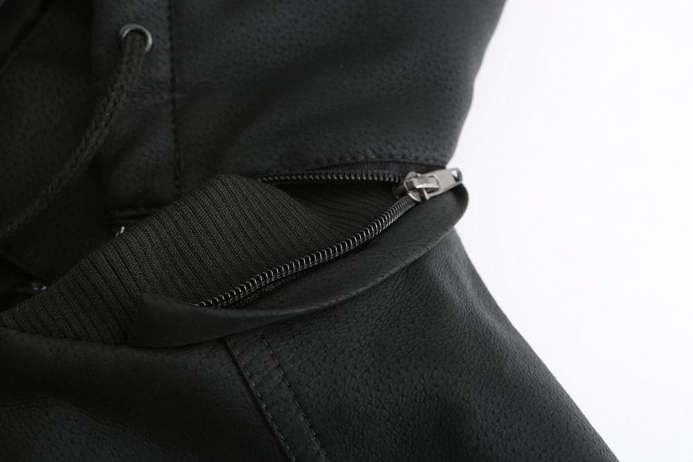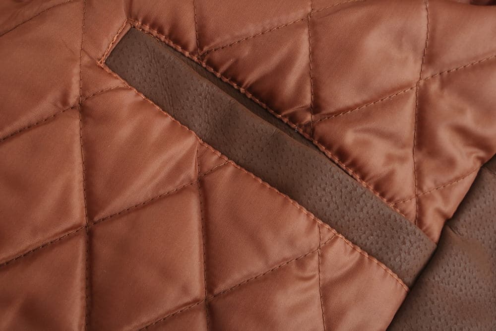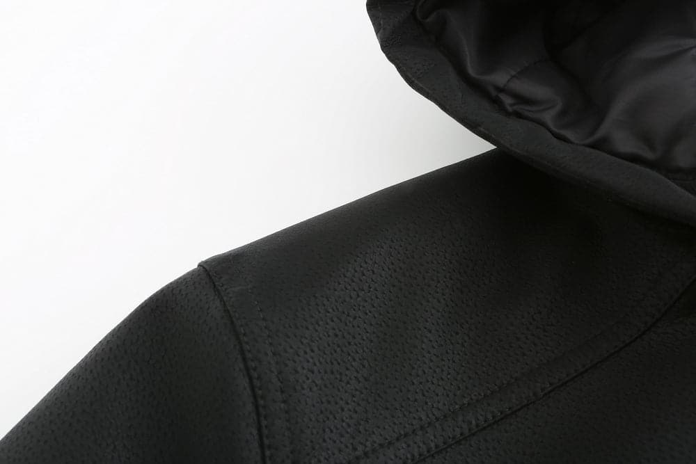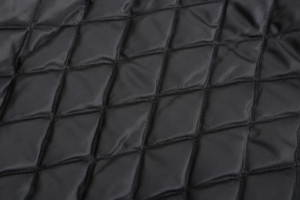 Die Jacke ist aus hochwertigem Kunstleder gefertigt, das Langlebigkeit, ein luxuriöses Gefühl und einfache Pflege bietet. Das Diamant-Steppmuster auf der Vorderseite und der Kapuze verleiht dem Gesamtdesign Tiefe und Raffinesse. Die Jacke ist mit einem robusten Reißverschluss ausgestattet, der für eine sichere Passform sorgt und das schlanke Aussehen der Jacke unterstreicht.