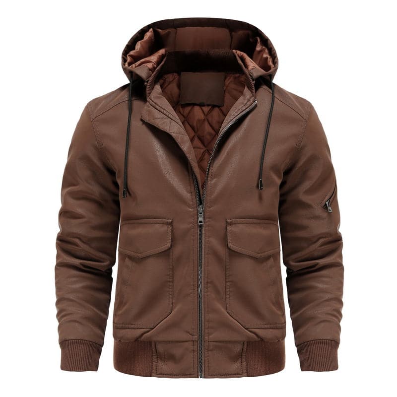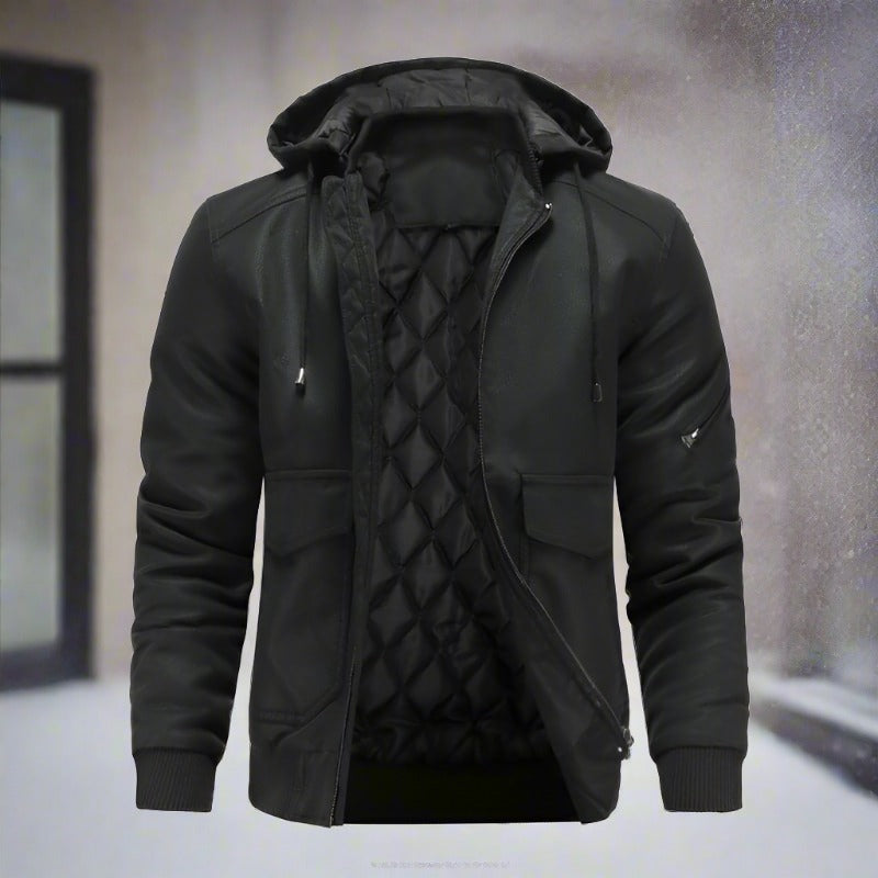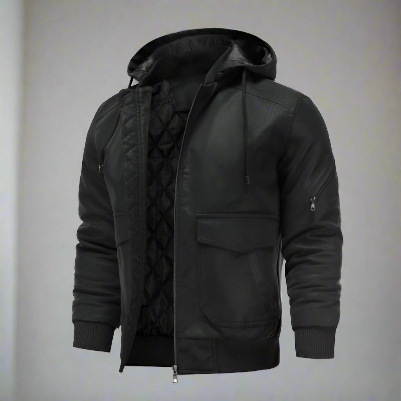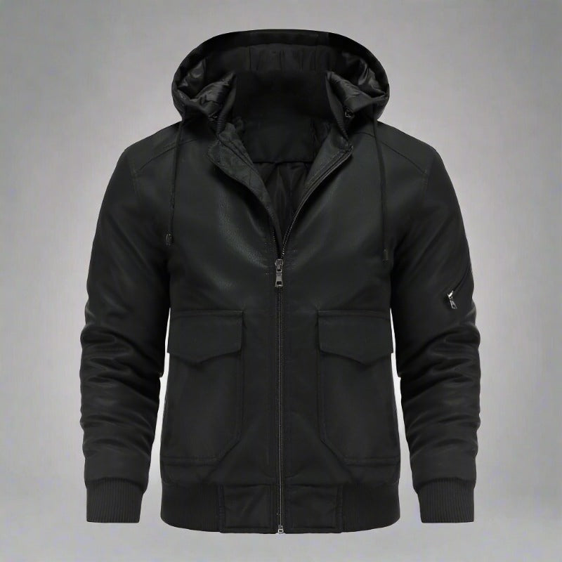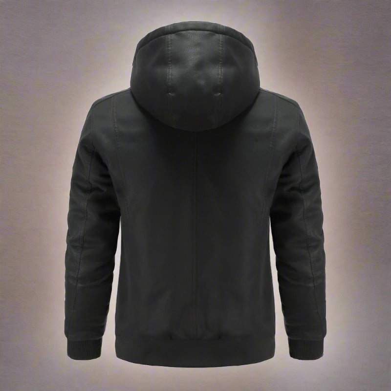 Liam – Klassische Lederjacke mit Kapuze