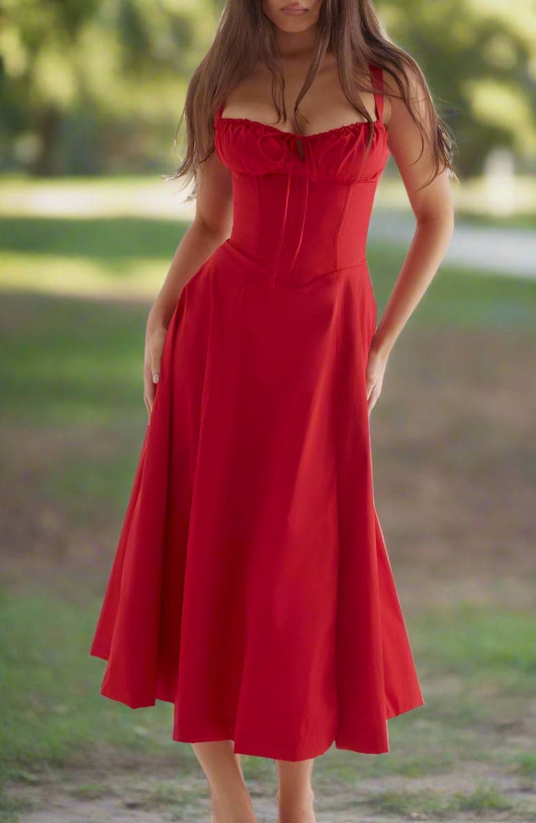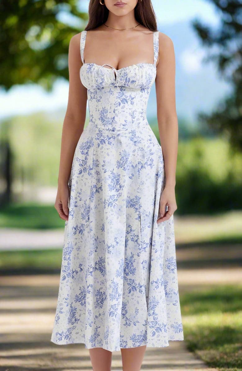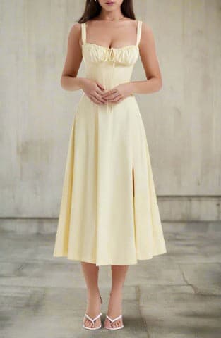 Aus leichtem, atmungsaktivem Stoff gefertigt, ist dieses Sommerkleid perfekt für einen sonnigen Tag im Freien, ein Picknick im Park oder einen gemütlichen Stadtbummel. Kombinieren Sie es mit Ihren Lieblingssandalen oder Keilabsätzen, einem Hut mit breiter Krempe und minimalistischem Schmuck, um das perfekte Sommerensemble zu vervollständigen.