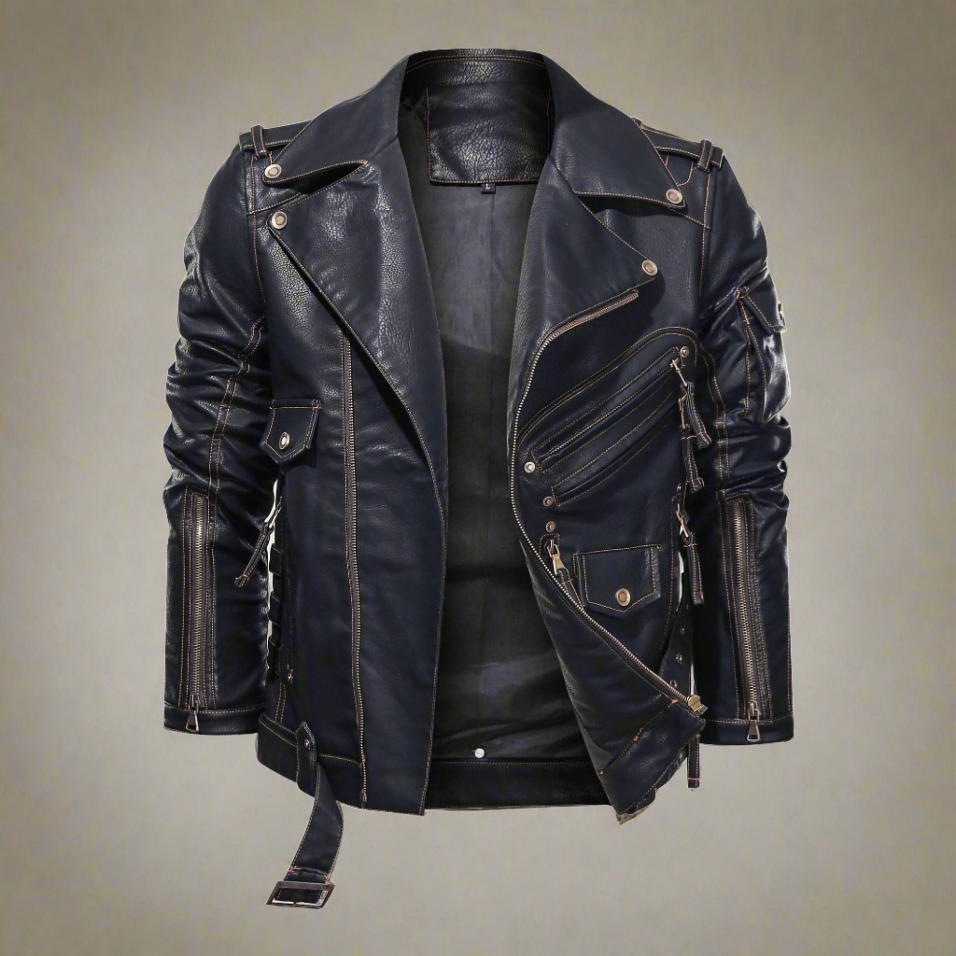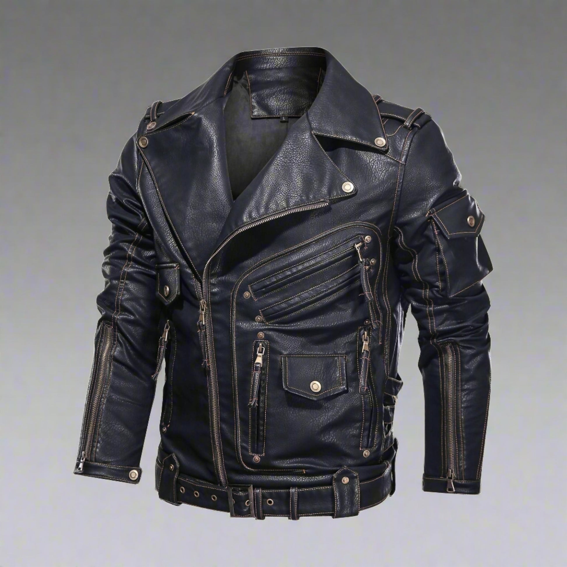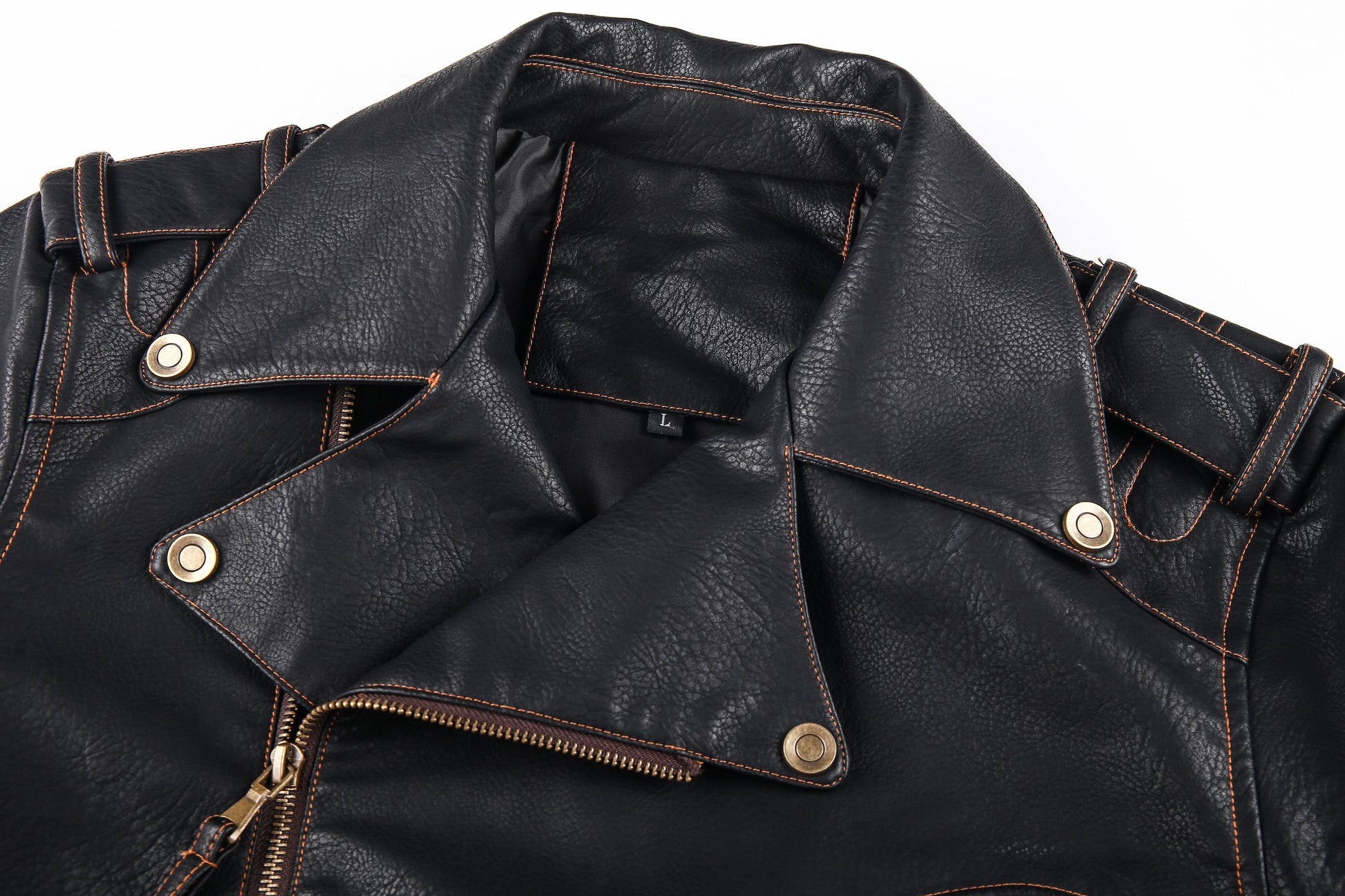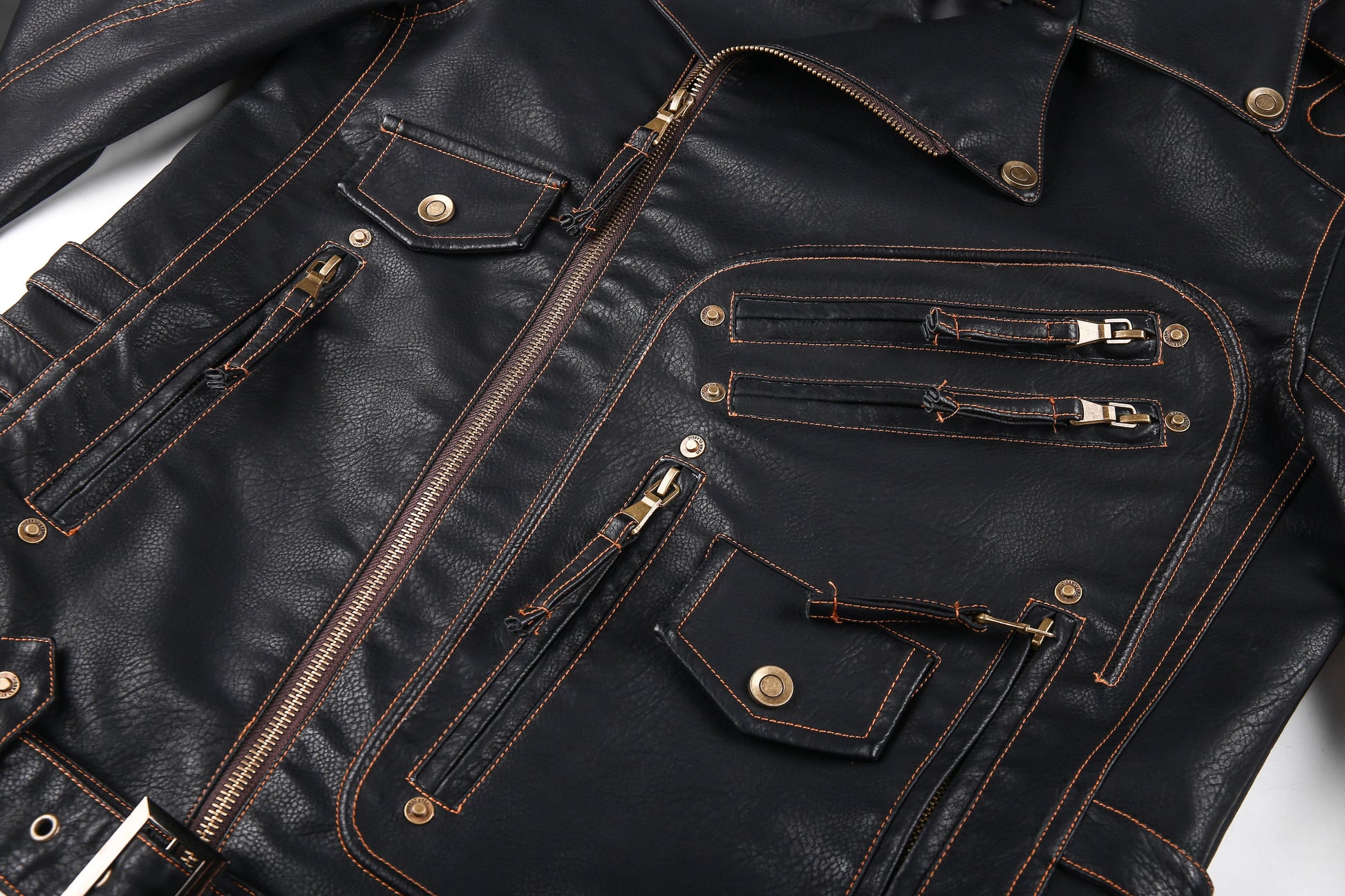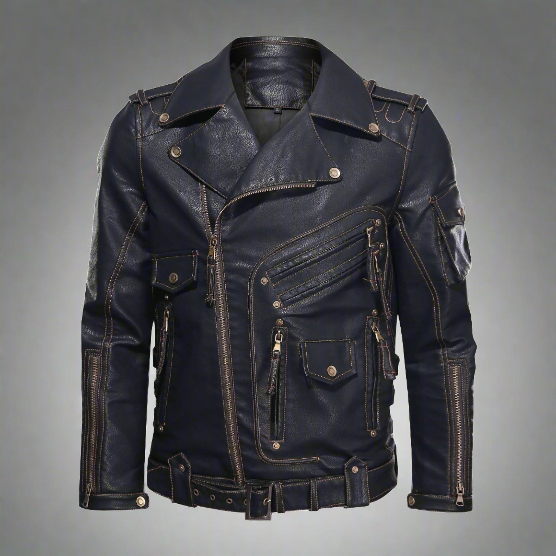 Jeder Reißverschluss, Knopf und Niet ist strategisch platziert, um das rebellische Ästhetik der Jacke zu verstärken. Ob Sie auf der Autobahn cruisen oder durch die Stadt schlendern, diese Jacke bietet die perfekte Mischung aus Komfort und Stil. Erklären Sie Ihren persönlichen Stil und umarmen Sie die rohe Energie der Straßen mit dieser ikonischen Lederjacke.