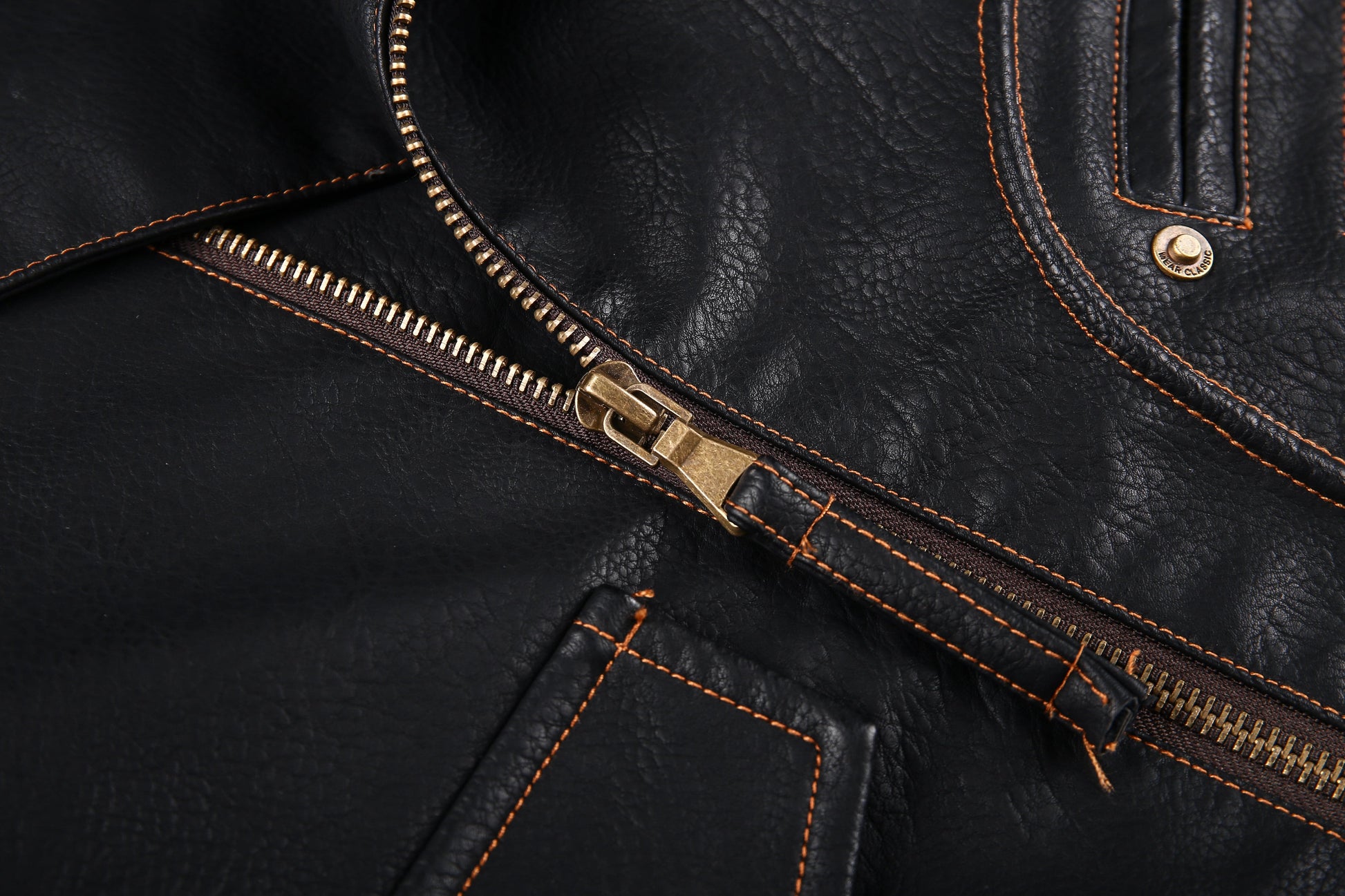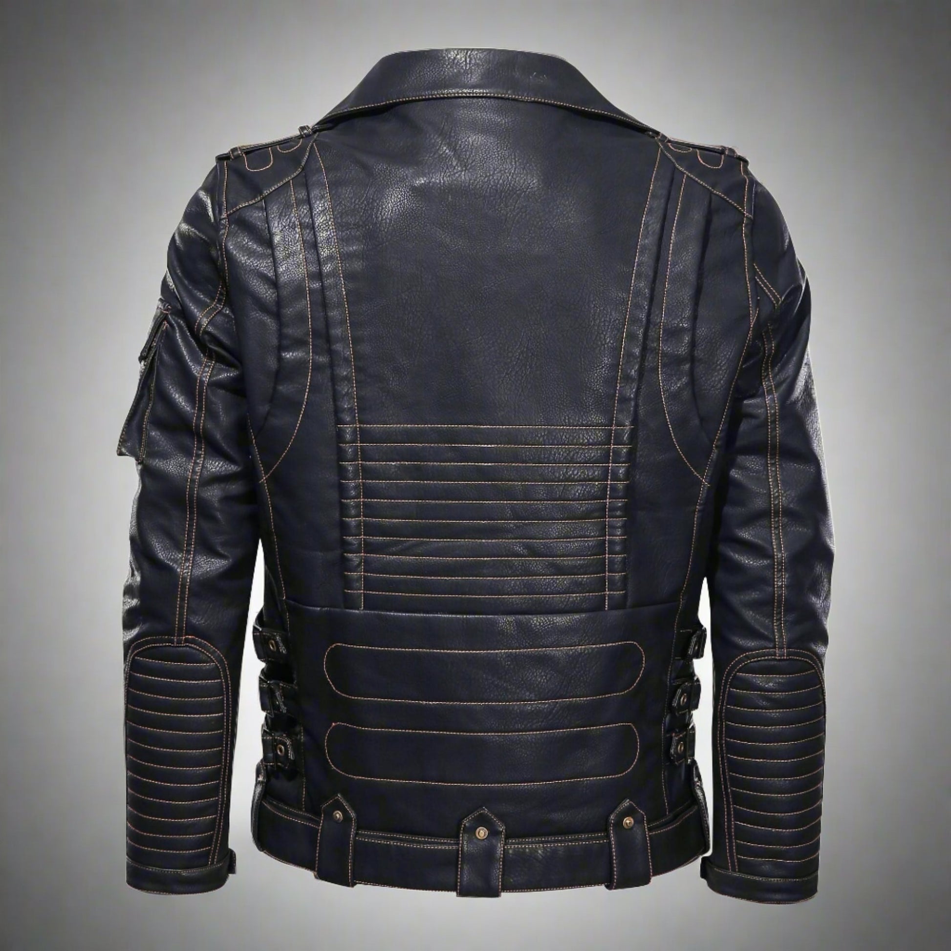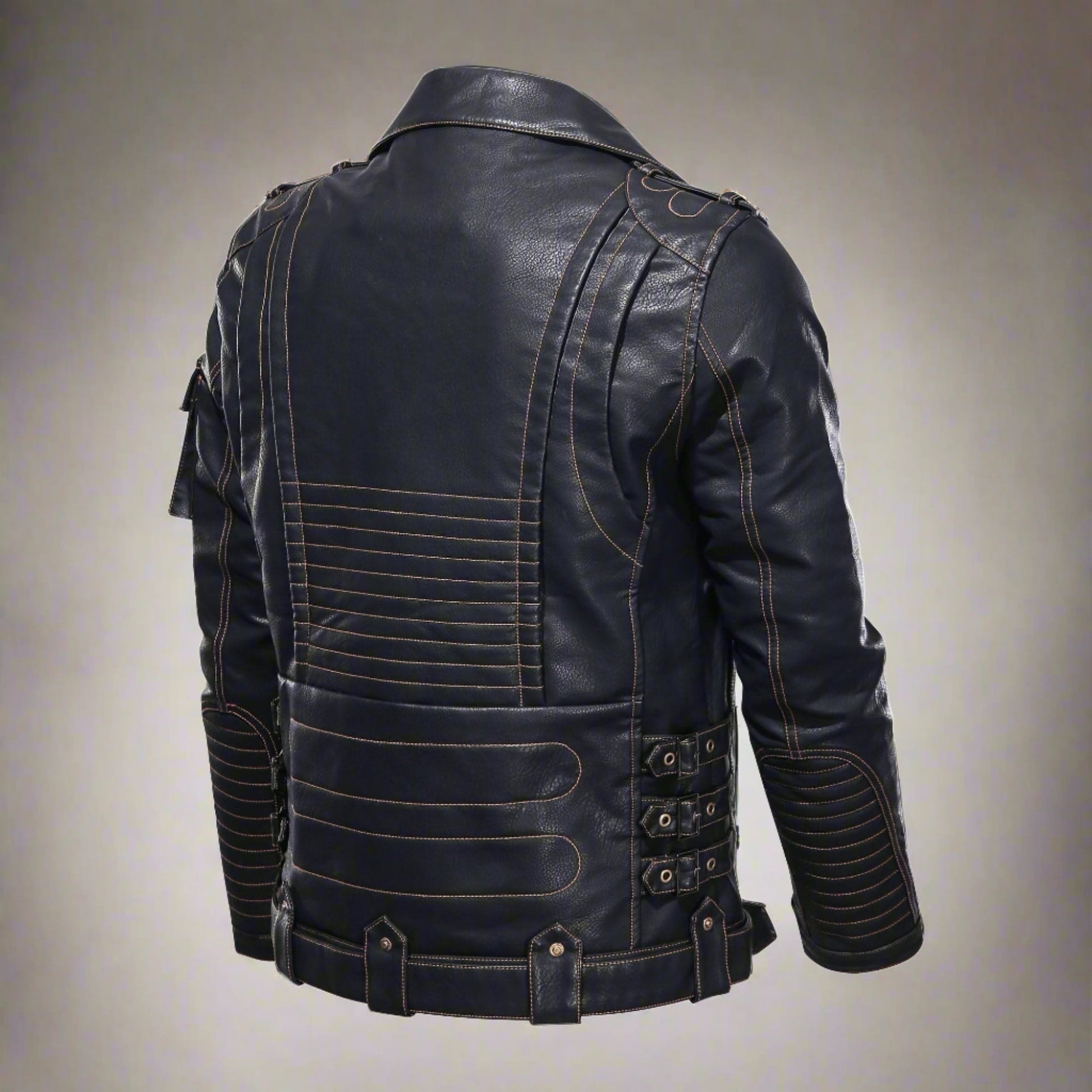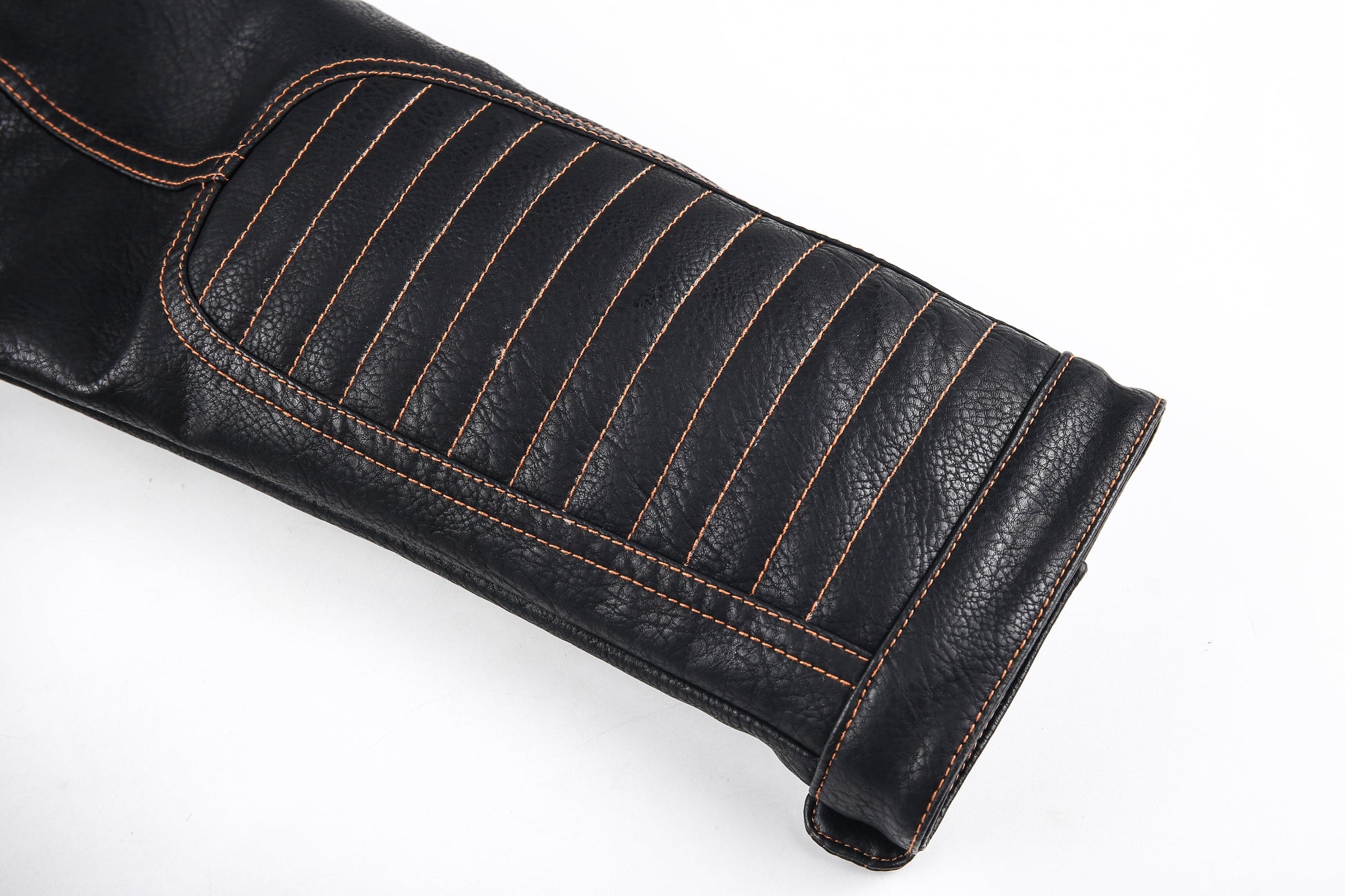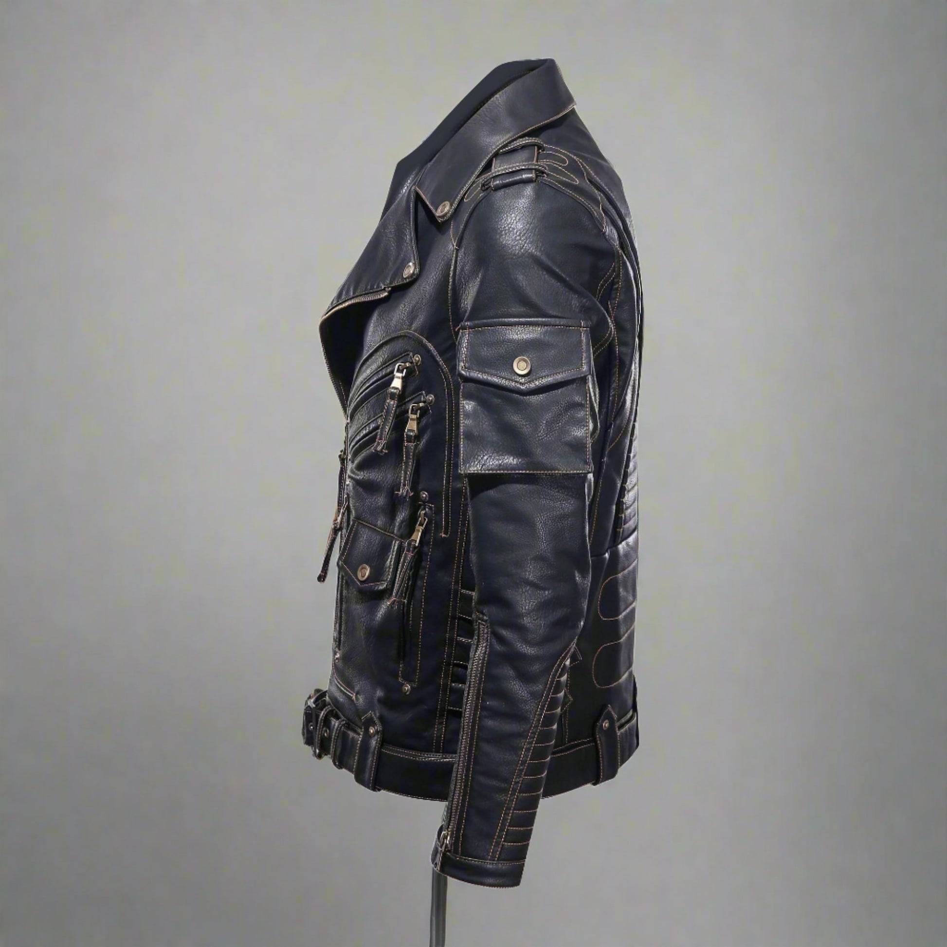 Jeder Reißverschluss, Knopf und Niet ist strategisch platziert, um das rebellische Ästhetik der Jacke zu verstärken. Ob Sie auf der Autobahn cruisen oder durch die Stadt schlendern, diese Jacke bietet die perfekte Mischung aus Komfort und Stil. Erklären Sie Ihren persönlichen Stil und umarmen Sie die rohe Energie der Straßen mit dieser ikonischen Lederjacke.