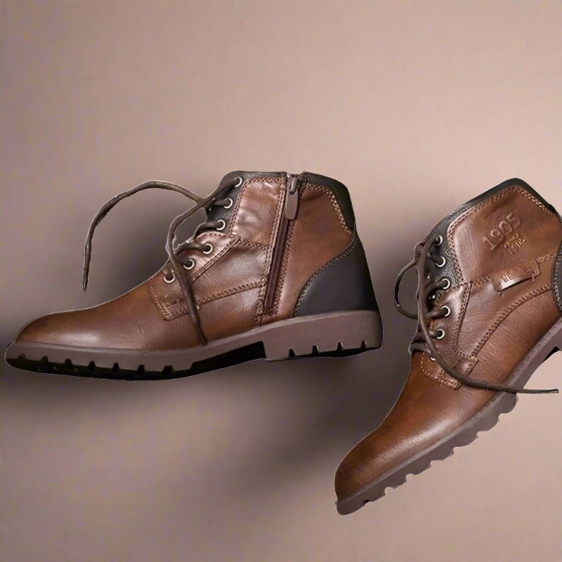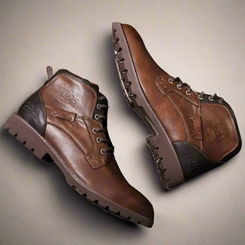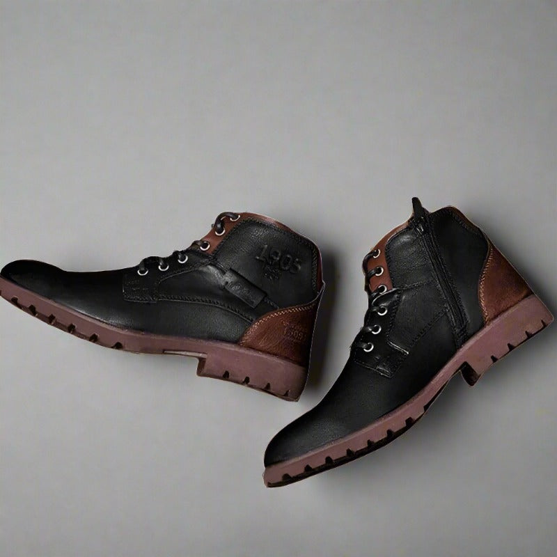 Treten Sie mit unseren klassischen, robusten Lederstiefeln selbstbewusst in jede Umgebung ein. Sorgfältig gefertigt für den modernen Mann, der eine nahtlose Mischung aus Stil und Haltbarkeit zu schätzen weiß. Mit ihrer robusten Konstruktion versprechen diese Stiefel, Ihren Alltagslook zu verbessern und gleichzeitig dauerhaften Komfort und Unterstützung zu bieten.