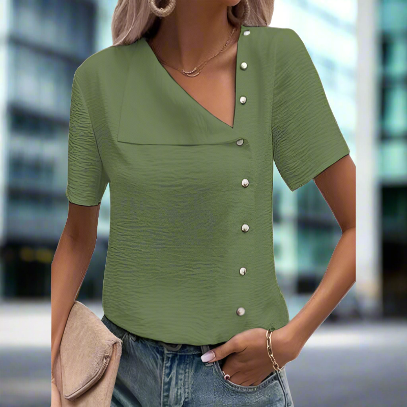 Nora – Stylische Designerbluse mit Knopfleiste und Knopfverschluss