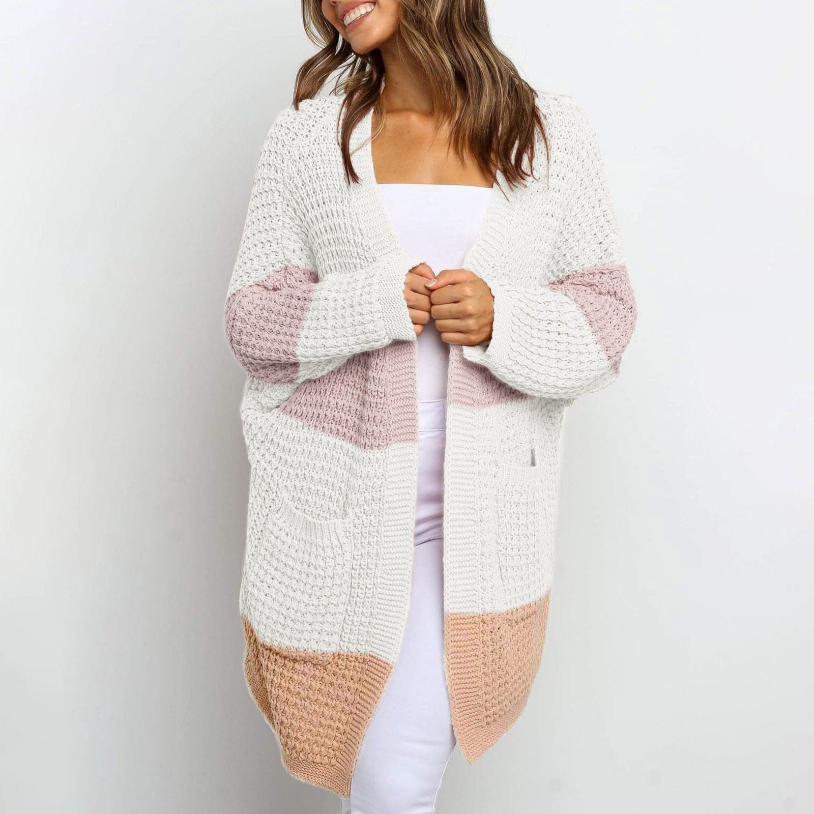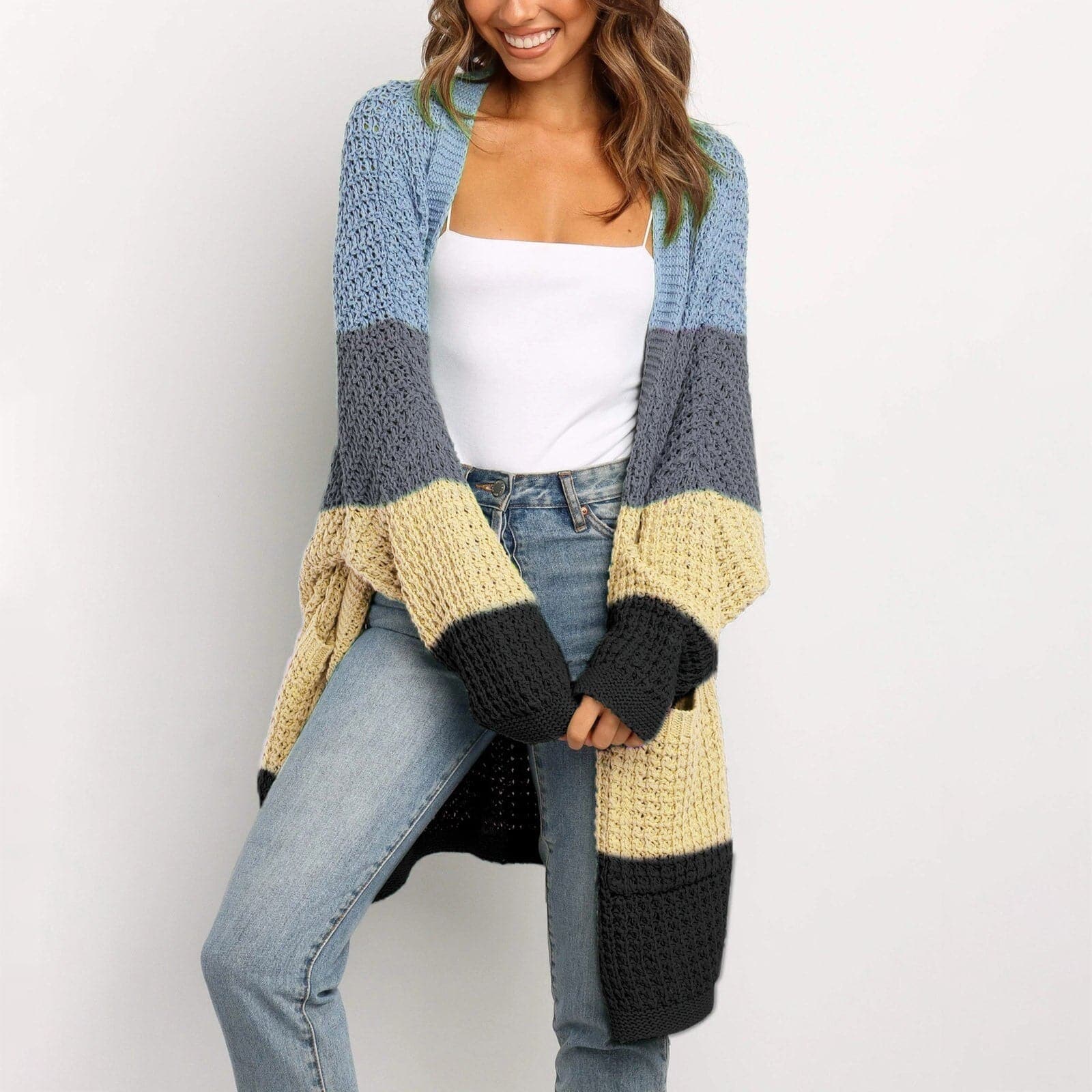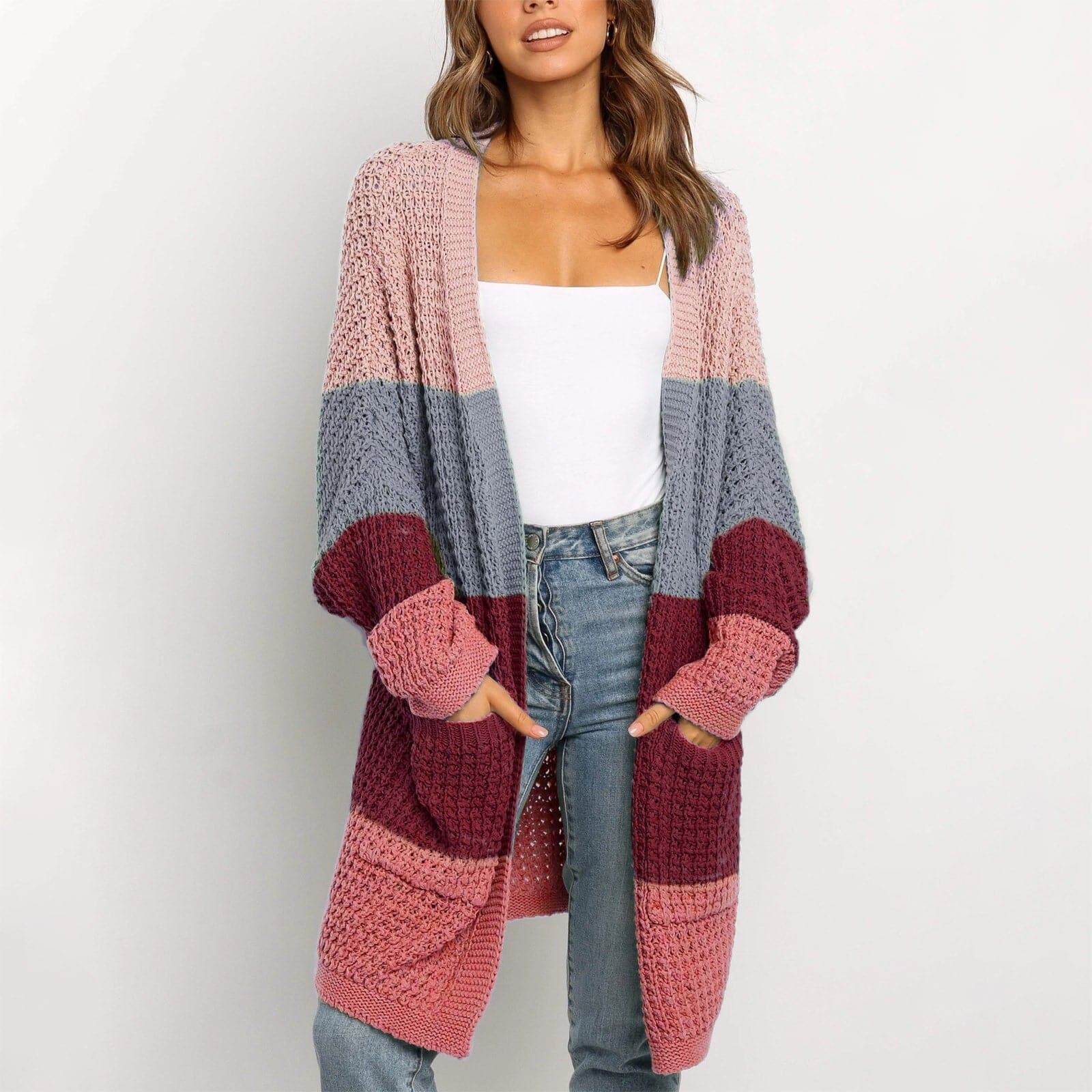 Tabea - Mehrfarbige weiche Strickjacke mit Seitentaschen